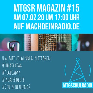 MTGSchulradio Magazin #15 Wir berichten heute von den Medientagen München, vom DigiCamp an unserer Schule und von unserer Kooperation mit dem Staatstheater Augsburg. Ganz besonders stolz sind wir auf unsere neue Partnerschaft mit (…)