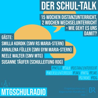 Im Schul-Talk KW12 vom 26.03.21 sprechen Dani und Carla mit Gästen aus verschiedenen Augsburger Schulen über das Thema „15 Wochen Distanzunterricht, 2 Wochen Wechselunterricht – wie geht es uns damit?“