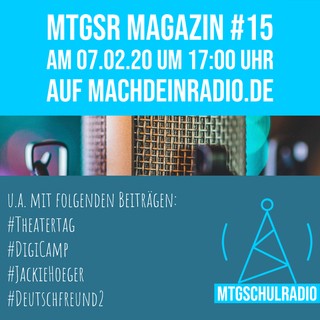 Die MTGSchulradio-Kids sind gerade ganz fleißig und stellen die letzten Beitrgäge für das Magazin #15 zusammen. Auch in der nächsten Sendung ist wieder #ganzvieldrin: